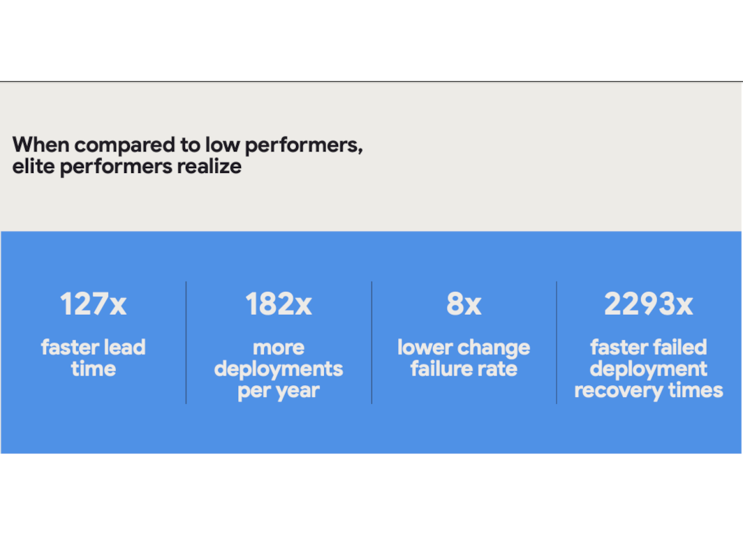 Since 2014 The DevOps Research and Assessment institute (DORA) has released their annual report on “State of DevOps”. The report is based on replies from more than 39K respondents, all of which are professionals working in software. The report is essentially a scavenger hunt in all this data. Looking for insights and trends and based on correlations in data the report setup hypotheses, triangulated with qualitative interviews, for what is happening in the world right now — The World of DevOps at least.