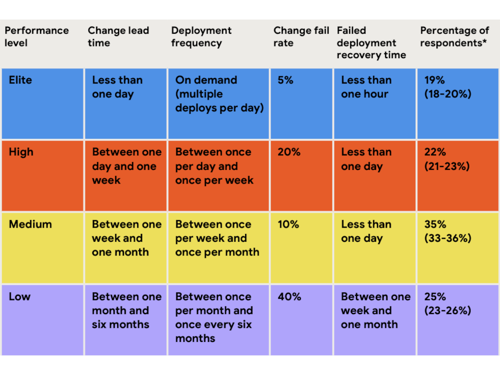 I have build and complied a deck of one-pagers explaining the DORA basics for newcomers. If you — like us — sit up and wait for the release of the report, then this 1st is probably too basic for you. If that’s the case, skip it and fast forward onto this year’s report findings.